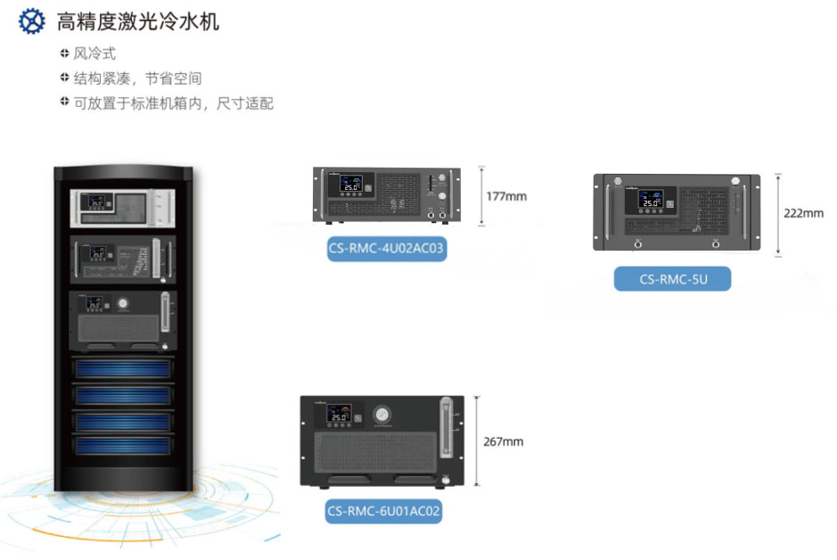 下面我們來簡單了解下酷凌時代的幾款機架式冷水機,4U,5U,6U,在10至35°C的預定溫度范圍內,溫控精度均可高達0.1°C。
