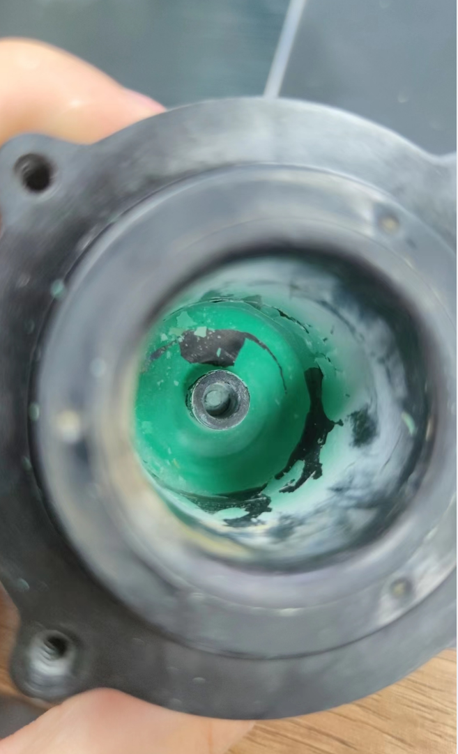 實拍圖:水泵拆開后腔體附含的綠色雜質