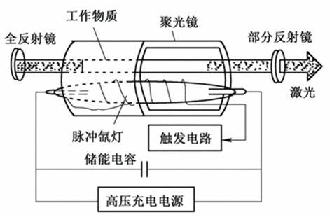 高功率固體激光器通過外部泵浦光(通常是二極管激光器或閃光燈)激發(fā)增益介質(zhì),使其內(nèi)部的激活離子躍遷到高能級(jí)。當(dāng)這些激活離子返回低能級(jí)時(shí),會(huì)釋放光子,形成受激輻射,最終通過諧振腔增強(qiáng),產(chǎn)生高功率的激光輸出。