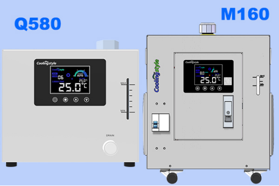 Coolingstyle的M160和M270系列冷水機,特別設計了大流量高揚程水泵和防火阻燃材料,配合智能PID溫控和自動加水功能,大幅提高系統效率。并且我建議客戶在使用設備前必須評估環境溫度、通風情況和水路設計,這些因素的重要性不亞于機器本身。