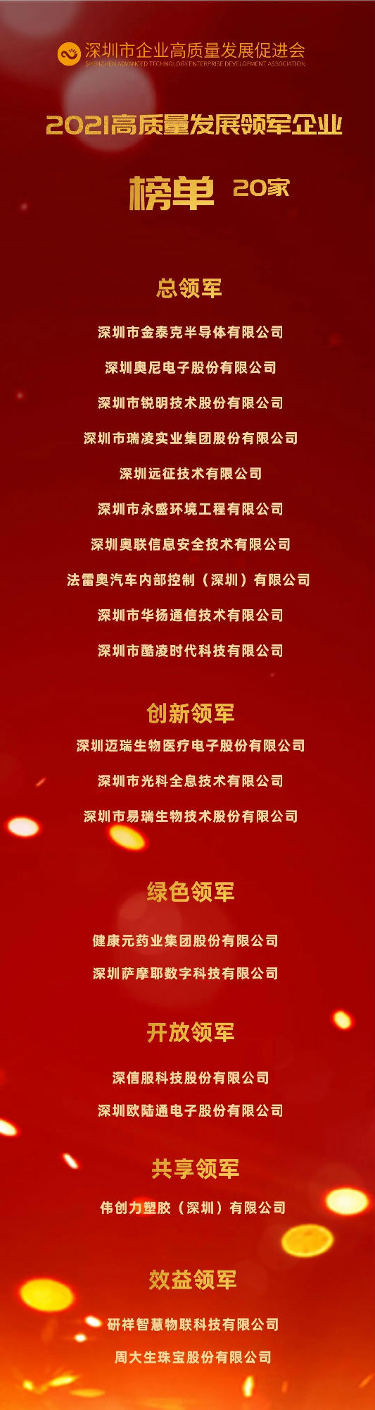 經(jīng)過三個多月的推選提名、走訪考察和專家綜合審定,20家企業(yè)和20位人物,從702家申報企業(yè)及近200位申報個人中脫穎而出,成為深圳高質量發(fā)展領軍企業(yè)、領軍人物。