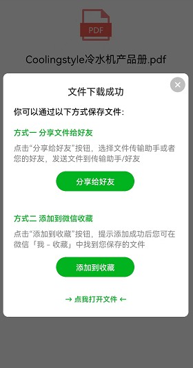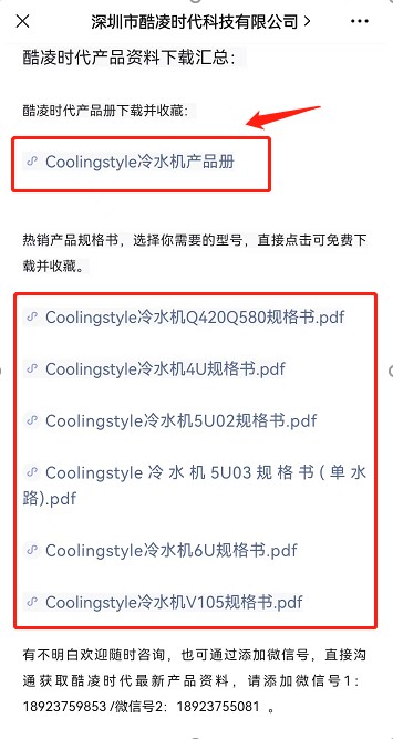 4,以下載 “Coolingstyle冷水機(jī)產(chǎn)品冊(cè)”為例,點(diǎn)擊“下載文件”;