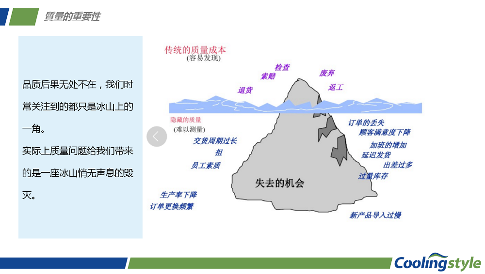 酷凌時代公司高度重視“品質(zhì)意識的重要性”,因此在新員工入職后第一課就安排了關(guān)于“質(zhì)量和品質(zhì)意識”的培訓。公司高度重視員工的作用,充分調(diào)動員工的積極性和創(chuàng)造性,最大限度地保證產(chǎn)品質(zhì)量、服務(wù)質(zhì)量和工作質(zhì)量??崃钑r代始終堅信:質(zhì)量是企業(yè)的生命,品質(zhì)意識是企業(yè)生命的靈魂。