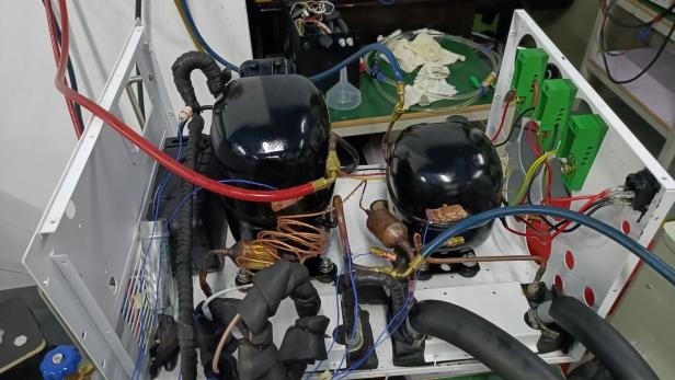 既然接了項目,再難也得克服,酷凌的技術團隊,繼續(xù)迎難而上,突破一個又一個難關。經(jīng)過不斷測試研究,冷媒機制冷能力又有新的提高,各項參數(shù)指標等都能夠順利達標,目前已進入小批量試產(chǎn)中。