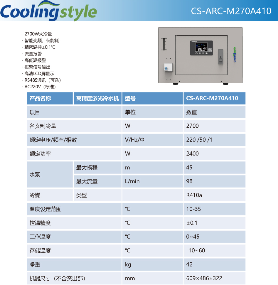 助力光伏產業,我司研發生產的高精度冷水機組在激光系統連續穩定運行扮演著很重要的角色,隨著激光技術的發展、激光的轉換效率不斷在提升,目前大都在5%-10%,意味著產生大量的熱量,主要的散熱方式主要有風冷和水冷,但在高熱量、高穩定性的需求下,風冷的方式遠無法滿足應用需求;而電池片的電路雕刻,對激光的光斑精度已達納米級別,光源器件的工作穩定性是影響光斑精度的核心部件,故冷水機組在此系統中不只扮演者降溫的角色,其高精度的溫控性能也是重要參數之一,助力光伏生產,我司為目前應用于激光雕刻工藝的激光器研發了以下三種型號的冷水機組,分別適用于綠光,光纖、固體這三種激光器。