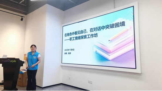 為關(guān)愛員工心理健康、營(yíng)造積極向上的職場(chǎng)氛圍,近日,酷凌時(shí)代攜手“公明街道V愛之家”在公司階梯教室舉辦了主題為《在角色中看見自己,在對(duì)話中突破困境》的職工情緒探索工作坊活動(dòng)。
