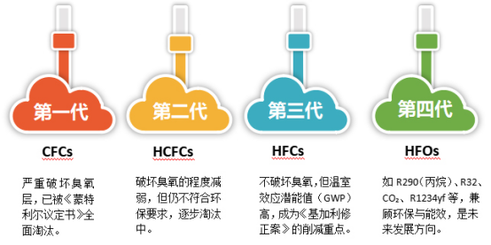 傳統制冷行業以氟利昂(CFCs、HCFCs、HFCs)等制冷劑為主,這類物質具有強烈的溫室效應與臭氧消耗潛能,長期以來被列入逐步淘汰名單。各國陸續出臺法規限制高GWP(全球變暖潛能值)制冷劑的使用,中國也在“雙碳目標”與“十四五節能減排規劃”中明確提出,到2030年單位GDP能耗將降低20%以上,并推動R290(丙烷)、CO?、R32等低GWP制冷劑的產業化應用。